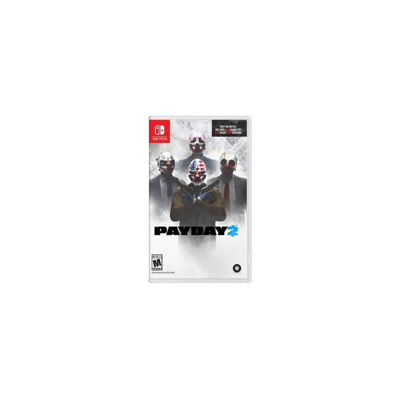 * Plataforma: Nintendo Switch * Género: Acción, Primera persona (FPS) (Moderno)* Jugadores: 1-4 (Cooperativo: 2-4 online)Sinopsis: Pay Day 2 es un videojuego de acción que nos pone en la piel de un equipo de atracadores dispuestos a reventar algunas de las cámaras acorazadas mejor protegidas de Washington DC a través de más de 30 emocionantes misiones. Esta versión para Nintendo Switch cuenta con novedades, mejoras gráficas y extras .PAYDAY 2 es un juego de disparos cooperativo lleno de acción en el que cuatro jugadores se vuelven a poner las máscaras del equipo PAYDAY original (Dallas, Hoxton, Wolf y Chains) para asolar Washington DC en una épica serie de crímenes. Hasta cuatro amigos pueden cooperar en cada golpe, y a medida que el equipo progrese, los golpes serán mayores, mejores y más provechosos. Según vayan ganando más dinero y convirtiéndose en conocidos criminales, obtendrán más opciones para construir y modificar armas y equipamiento. PAYDAY 2 incluye compatibilidad con el menú táctil y una función de vibración recién diseñada que responde cuando, por ejemplo, disparas armas o lanzas granadas.